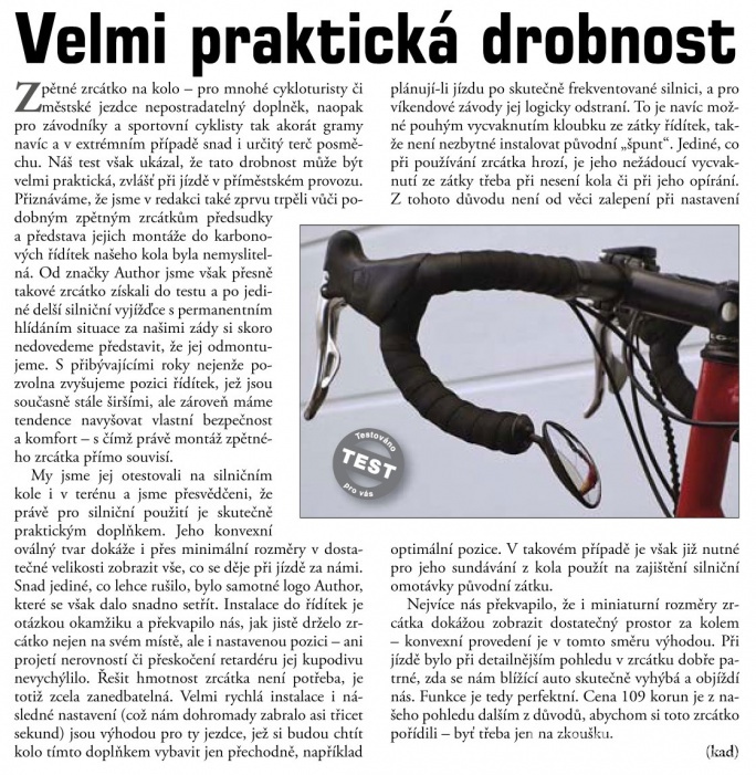 CYKLOCENTRUM.cz » Díly, doplňky, příslušenství » zrcátka » Zrcátko AM-70 AUTHORZrcátko AM-70 AUTHORKonvexní oválné zrcátko s nastavitelným úhlem. Uchyceni do řídítek - speciální zátka. Rozměr 46x70mm. Cena s DPH125 KčPůvodní cena 125 Kč Referenční cena 125 Kč VariantyDostupnost zbožíčernáKód zboží: 412902Číslo dodavatele: 16450005Cena zboží: 125 KčHOSKLADEM > 1 ksProdejna Praha - HolešoviceBubenské nábřeží 306, Praha 7Telefon: 725 085 309Email: holesovice@cyklocentrum.czČBSKLADEM > 1 ksProdejna České BudějoviceFr. Ondříčka 417/52, České BudějoviceTelefon: 725 121 449Email: budejovice@cyklocentrum.czBNNA DOTAZProdejna BrnoVodní 13a, BrnoTelefon: 702 144 752Email: brno@cyklocentrum.czEXSKLADEM > 1 ksProdejna Externí skladPopisFotografieVideoDotaz na zbožíPopis zbožíKonvexní oválné zrcátko s nastavitelným úhlem. Uchyceni do řídítek - speciální zátka. Rozměr 46x70mm. FotografieVideogalerie Dotaz na zbožíOsoba*Email*TelefonDotaz** Označená pole jsou povinná